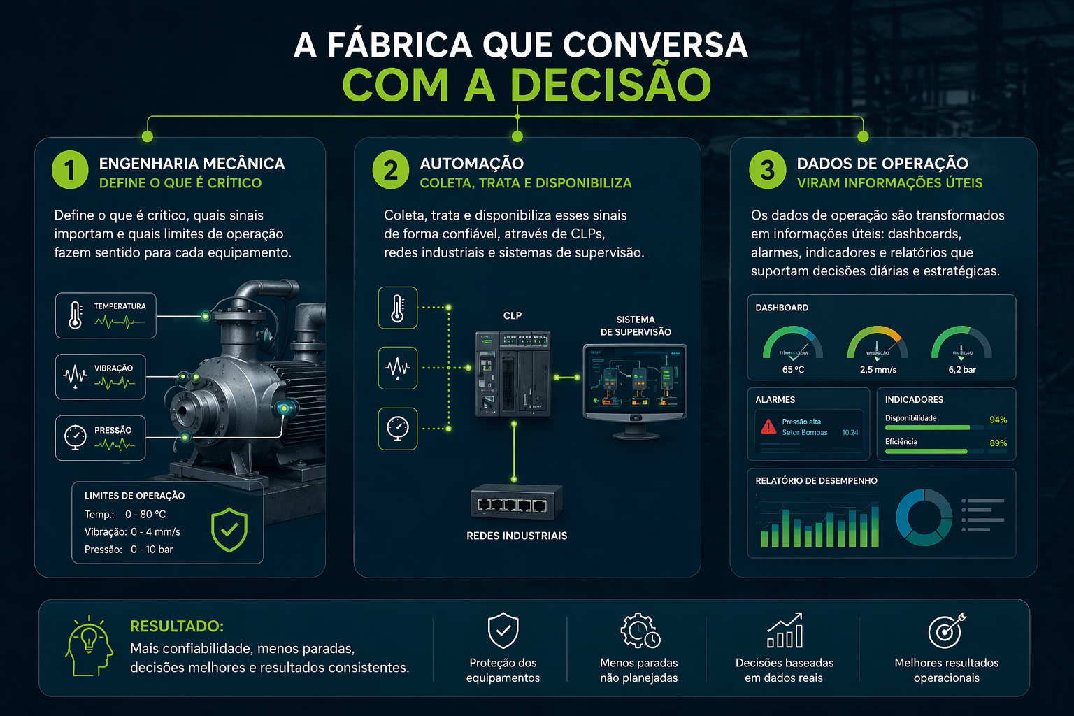 - a engenharia mecânica define o que é crítico, quais sinais importam e quais limites de operação fazem sentido para cada equipamento;